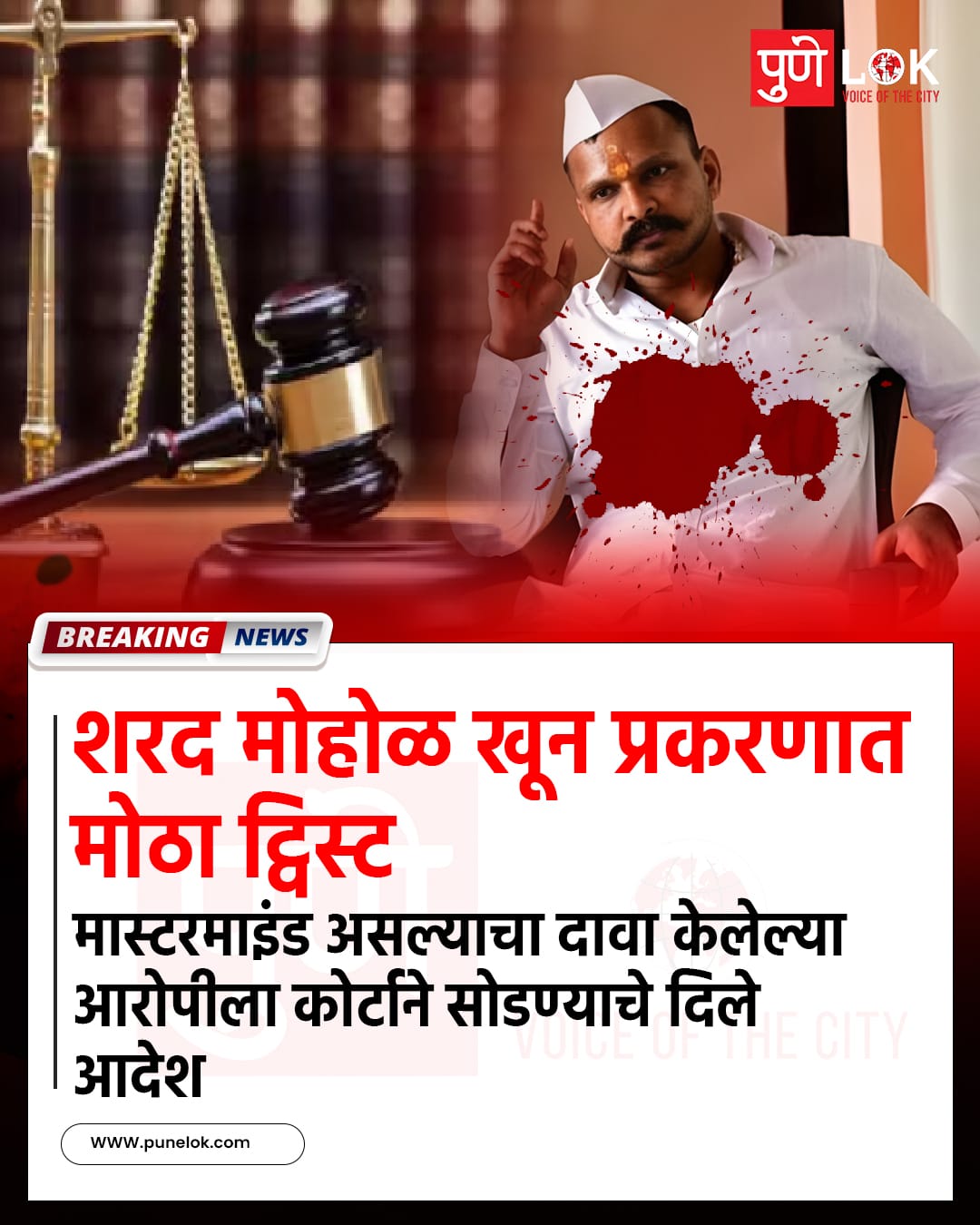Homeगुन्हाशरद मोहोळ खून प्रकरणात मोठा ट्विस्ट! ⚖️ गुन्हा शरद मोहोळ खून प्रकरणात मोठा ट्विस्ट! ⚖️ By Pune Lok 19 December 2025 0 152 Share FacebookTwitterPinterestWhatsApp मास्टरमाइंड असल्याचा दावा करण्यात आलेल्या आरोपीला कोर्टाने सोडण्याचे आदेश दिले आहेत.या निर्णयामुळे प्रकरणाला नवे वळण मिळाले असून राजकीय व सामाजिक वर्तुळात चर्चांना उधाण आले आहे. Share FacebookTwitterPinterestWhatsApp Previous article🎙️ पुणे लोकचा पुढचा पॉडकास्ट लवकरच!Next article🎙️ पुणे लोक पॉडकास्ट – पहिला अध्याय! Pune Lokhttp://www.punelok.com RELATED ARTICLES गुन्हा लोणी–हडपसरमध्ये धडक कारवाई टोळी प्रमुखासह दोघांना अटक 2 पिस्टल जप्त, गुन्हेगारीला धक्का 20 December 2025 LEAVE A REPLY Cancel reply Comment: Please enter your comment! Name:* Please enter your name here Email:* You have entered an incorrect email address! Please enter your email address here Website: Save my name, email, and website in this browser for the next time I comment. Most Popular पुणे रेल्वे स्टेशनचा मेगा कायापालट लवकरच ! T20 वर्ल्ड कप 2026 च्या पहिल्याच सामन्यात टीम इंडियाला तंदुरुस्तीचा धक्का बसला आहे. मे ऐवजी एप्रिलमध्ये रिलीज होणार सरसंघचालक कोण बनणार या मुद्द्यावर स्पष्टपणे आपले मत मांडताना मोहन भागवत दिसले 🗣️. Load more