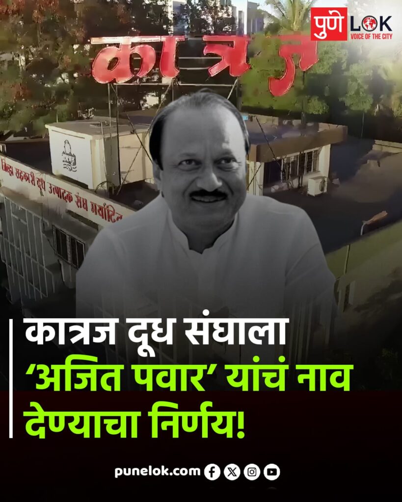 ताज्या बातम्या कात्रज दूध संघाला ‘अजित पवार’ यांचं नाव देण्याचा निर्णय घेण्यात आला असून By Pune Lok - 3 February 2026 0 19 FacebookTwitterPinterestWhatsApp या निर्णयामुळे राजकीय आणि सहकार क्षेत्रात मोठी चर्चा सुरू झाली आहे.