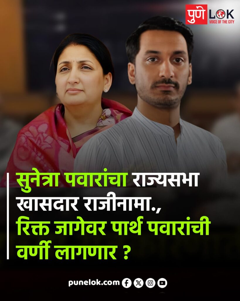 राजकारण सुनेत्रा पवारांचा राज्यसभा खासदार पदाचा राजीनामा 💥रिक्त झालेल्या जागेवर पार्थ पवारांची वर्णी लागणार का? By Pune Lok - 3 February 2026 0 36 FacebookTwitterPinterestWhatsApp राजकीय वर्तुळात चर्चांना उधाण!