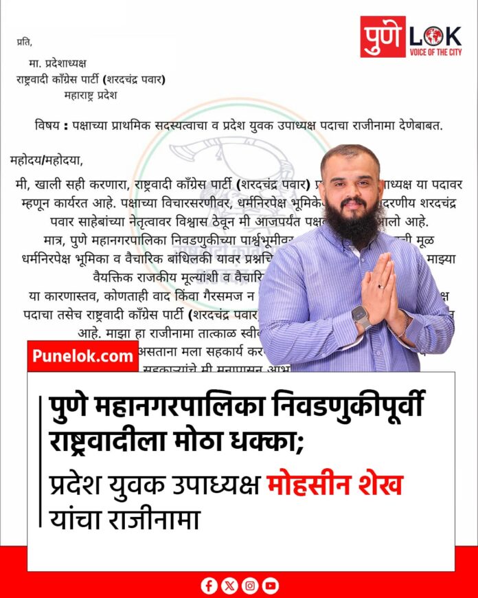 Homeराजकारणप्रदेश युवक उपाध्यक्ष मोहसीन शेख यांचा राजीनामा राजकारण प्रदेश युवक उपाध्यक्ष मोहसीन शेख यांचा राजीनामा By Pune Lok 25 December 2025 0 16 Share FacebookTwitterPinterestWhatsApp राजकारणात मोठी खळबळ! संघटनात्मक फेरबदल की आगामी निर्णयांचा संकेत? 👀🗳️ TagsMohsinshekh Share FacebookTwitterPinterestWhatsApp Previous articleपुण्याच्या राजकारणात हालचालींना वेग 🔥Next articleMERRY CHRISTMAS Pune Lokhttp://www.punelok.com RELATED ARTICLES राजकारण १२ जिल्हा परिषद, १२५ पंचायत समित्यांचा निवडणूक कार्यक्रम जाहीर!५ फेब्रुवारी मतदान, ७ फेब्रुवारी मतमोजणी🎯 14 January 2026 राजकारण कुख्यात गुंड गजा मारणे याला 15 व 16 तारखेला मतदानासाठी पुण्यात येण्याची परवानगी 14 January 2026 राजकारण पुणे महापालिका निवडणुकीत गुंडांना उमेदवारी दिल्याने राजकीय वातावरण तापले आहे. 14 January 2026 LEAVE A REPLY Cancel reply Comment: Please enter your comment! Name:* Please enter your name here Email:* You have entered an incorrect email address! Please enter your email address here Website: Save my name, email, and website in this browser for the next time I comment. Most Popular भटके कुत्रे चावले तर जबर भरपाई!नागरिकांच्या सुरक्षिततेसाठी न्यायालयाचा ठाम आदेश, राज्य सरकारांना कडक इशारा दिला. 🚨 10 मिनिटांत डिलिव्हरी बंदरस्त्यावरील सुरक्षिततेचा विचार करत केंद्र सरकारने घेतलेल्या निर्णयाचे 🙏 राघव चढ्ढा यांनी स्वागत करत जाहीर आभार मानले. हा निर्णय डिलिव्हरी कर्मचाऱ्यांच्या... १२ जिल्हा परिषद, १२५ पंचायत समित्यांचा निवडणूक कार्यक्रम जाहीर!५ फेब्रुवारी मतदान, ७ फेब्रुवारी मतमोजणी🎯 राजकीय चर्चा🔴सहभागासाठी आमंत्रणराजकीय संशोधन आणि चर्चेत रुची असलेल्या सर्वांना हार्दिक आमंत्रण! Load more