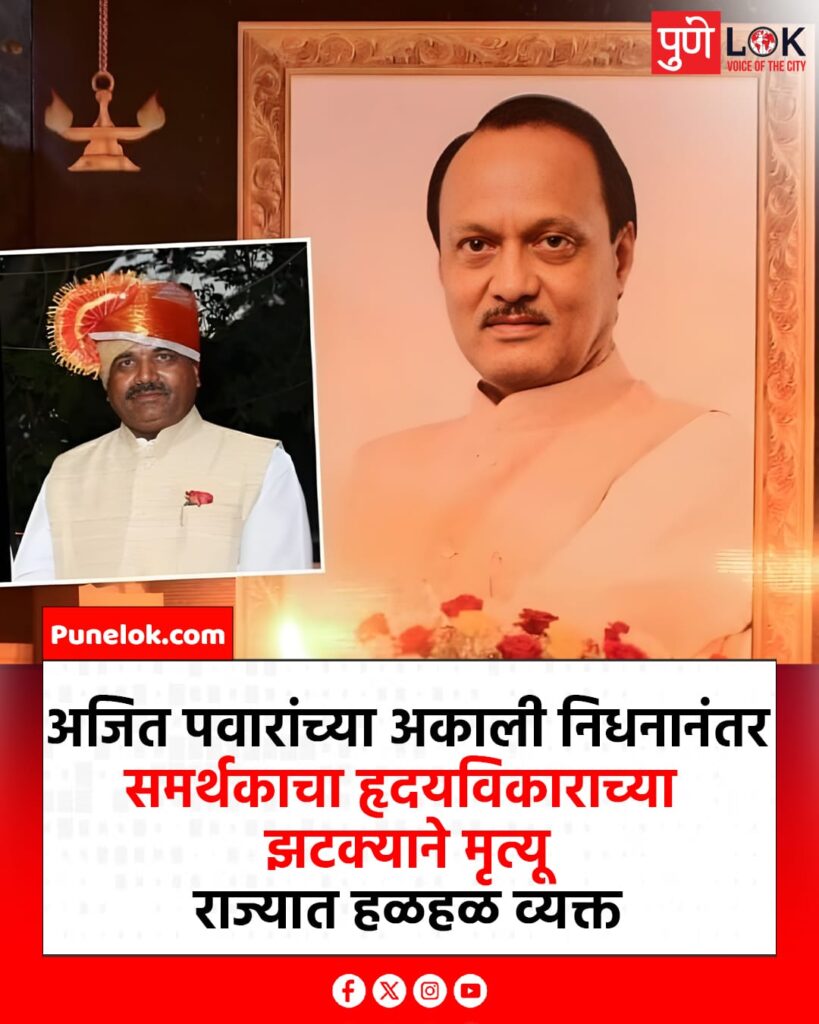 29 जानेवारी रोजी बारामती येथे झालेल्या त्यांच्या अंत्यसंस्कारासाठी मोठ्या प्रमाणात जनसमुदाय उपस्थित होता. अजित पवारांचे अचानक जाणे त्यांच्या समर्थकांसाठी अत्यंत धक्कादायक ठरले आहे. याच धक्क्यात नाशिक जिल्ह्यातील दिंडोरी येथील राष्ट्रवादी काँग्रेसचे निष्ठावान कार्यकर्ते सुदाम बोढके यांचा हृदयविकाराच्या तीव्र झटक्याने दुर्दैवी मृत्यू झाला आहे.🙏🕯️💔