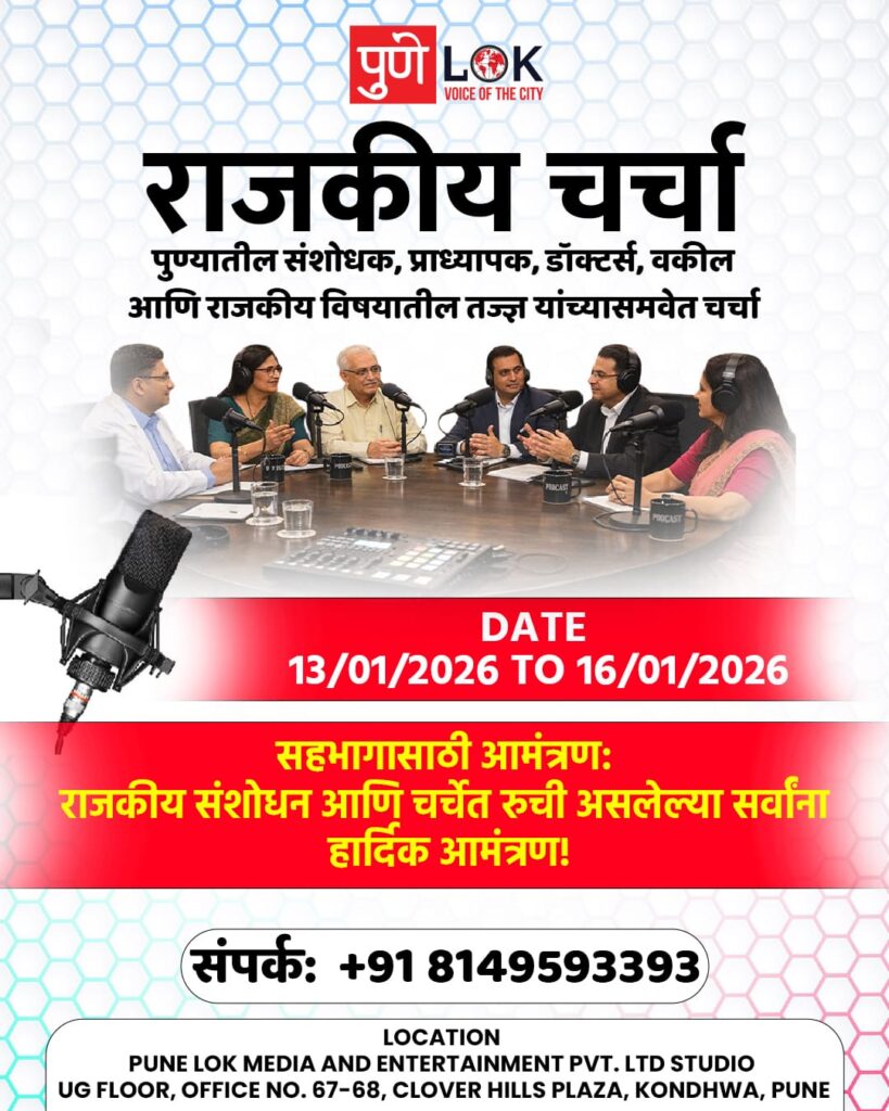 Blog राजकीय चर्चा🔴सहभागासाठी आमंत्रणराजकीय संशोधन आणि चर्चेत रुची असलेल्या सर्वांना हार्दिक आमंत्रण! By Pune Lok - 14 January 2026 0 19 FacebookTwitterPinterestWhatsApp
