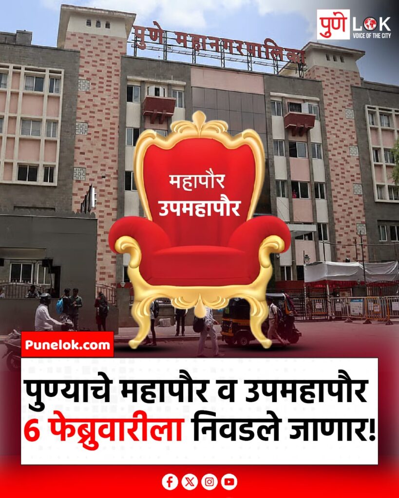 Blog पुण्याचे महापौर व उपमहापौर 6 फेब्रुवारीला निवडले जाणार! By Pune Lok - 24 January 2026 0 11 FacebookTwitterPinterestWhatsApp पुण्याचे महापौर व उपमहापौर 6 फेब्रुवारीला निवडले जाणार! 🏛️शहराच्या नेतृत्वासाठी निर्णायक दिवस — पुण्याच्या राजकारणाकडे सर्वांचे लक्ष 👀