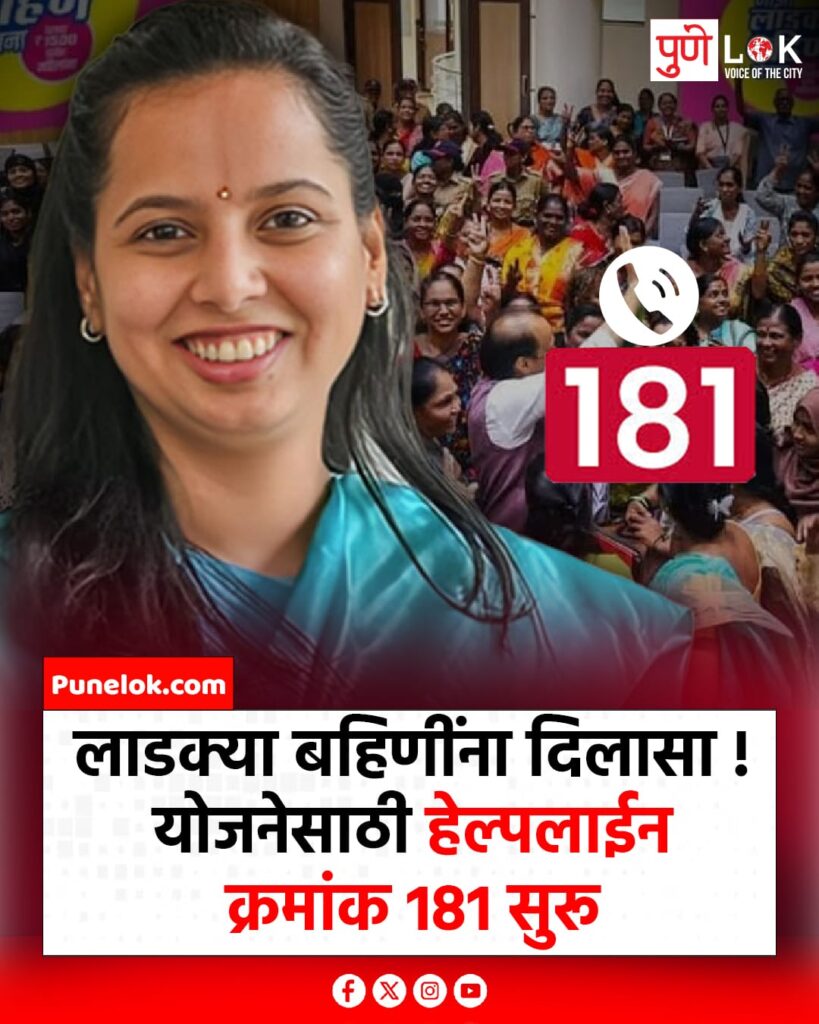 Blogताज्या बातम्या लाडक्या बहिणींना मोठा दिलासा! 🤝योजने संदर्भातील तक्रारी By Pune Lok - 24 January 2026 0 14 FacebookTwitterPinterestWhatsApp माहिती व मदतीसाठी हेल्पलाईन क्रमांक 181 सुरू 📞
