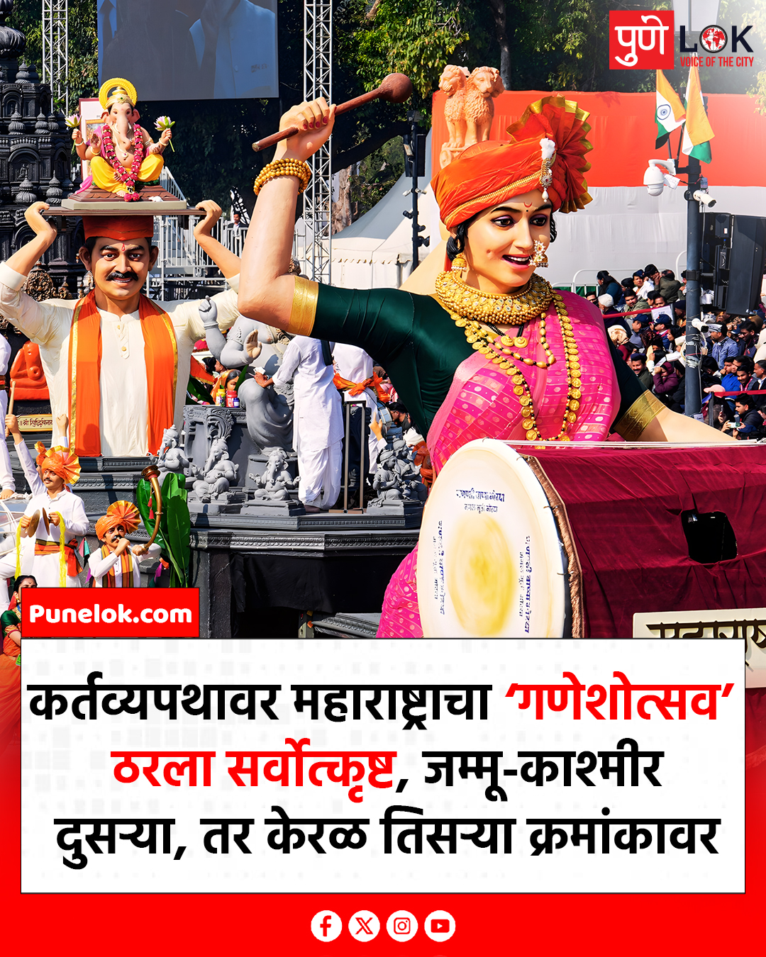 Blog कर्तव्यपथावर महाराष्ट्राचा ‘गणेशोत्सव’ ठरला सर्वोत्कृष्ट, जम्मू-काश्मीर दुसऱ्या, तर केरळ तिसऱ्या क्रमांकावर By Pune Lok - 29 January 2026 0 17 FacebookTwitterPinterestWhatsApp