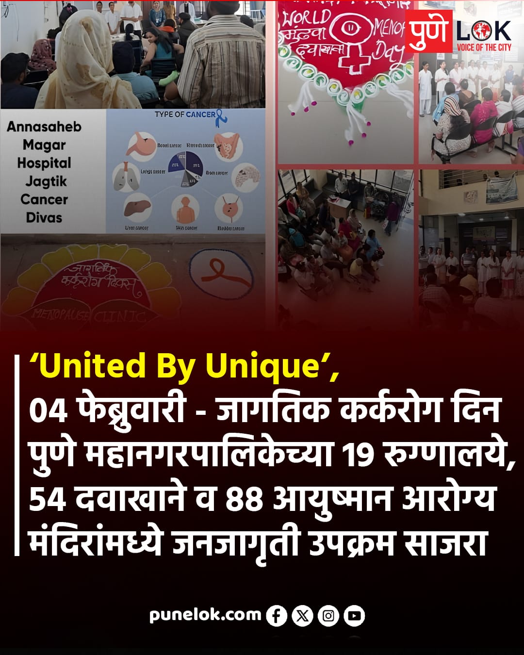 рдкреБрдгреЗ рдорд╣рд╛рдирдЧрд░рдкрд╛рд▓рд┐рдХреЗрдЪреНрдпрд╛ ЁЯПе 19 рд░реБрдЧреНрдгрд╛рд▓рдпреЗ, ЁЯй║ 54 рджрд╡рд╛рдЦрд╛рдиреЗ рд╡ ЁЯМ┐ 88 рдЖрдпреБрд╖реНрдорд╛рди рдЖрд░реЛрдЧреНрдп рдордВрджрд┐рд░рд╛рдВрдордзреНрдпреЗ рдХрд░реНрдХрд░реЛрдЧрд╛рдмрд╛рдмрдд рдЬрдирдЬрд╛рдЧреГрддреА рдЙрдкрдХреНрд░рдо рд╕рд╛рдЬрд░рд╛ рдХрд░рдгреНрдпрд╛рдд рдЖрд▓рд╛.