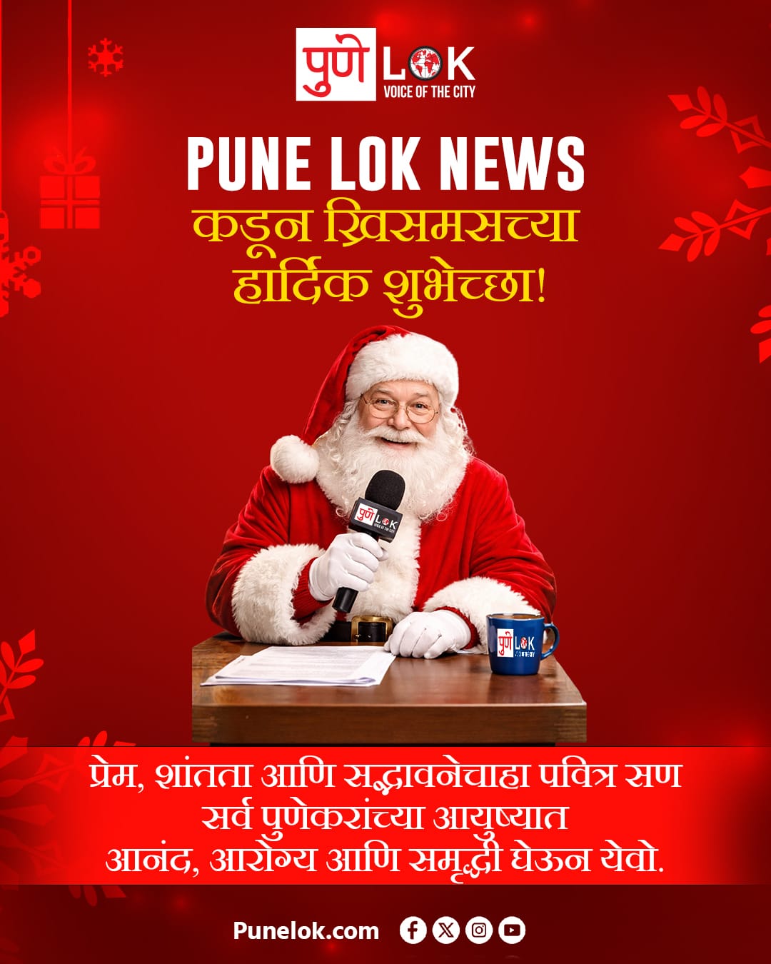 HomeBlogMERRY CHRISTMAS Blog MERRY CHRISTMAS By Pune Lok 25 December 2025 0 8 Share FacebookTwitterPinterestWhatsApp पुणेकरांच्या वतीने सर्वांना नाताळच्या हार्दिक शुभेच्छा! 🎄✨प्रेम, शांतता, आनंद आणि समृद्धीने तुमचे आयुष्य उजळो, हीच सदिच्छा. Share FacebookTwitterPinterestWhatsApp Previous articleप्रदेश युवक उपाध्यक्ष मोहसीन शेख यांचा राजीनामाNext articleमहानगरपालिका निवडणुकीच्या तोंडावर नगरसेवकांनी कामाची सुरुवात केली आहे Pune Lokhttp://www.punelok.com RELATED ARTICLES Blog 10 मिनिटांत डिलिव्हरी बंदरस्त्यावरील सुरक्षिततेचा विचार करत केंद्र सरकारने घेतलेल्या निर्णयाचे 🙏 राघव चढ्ढा यांनी स्वागत करत जाहीर आभार मानले. हा निर्णय डिलिव्हरी कर्मचाऱ्यांच्या... 14 January 2026 Blog राजकीय चर्चा🔴सहभागासाठी आमंत्रणराजकीय संशोधन आणि चर्चेत रुची असलेल्या सर्वांना हार्दिक आमंत्रण! 14 January 2026 Blog पुण्यात वनविभागाने केलेल्या कारवाईत अवैध पोपट तस्करीचा पर्दाफाश झाला आहे. या प्रकरणात पोपटांची तस्करी करणाऱ्या ३ आरोपींना अटक करण्यात आली आहे. 🎯 14 January 2026 LEAVE A REPLY Cancel reply Comment: Please enter your comment! Name:* Please enter your name here Email:* You have entered an incorrect email address! Please enter your email address here Website: Save my name, email, and website in this browser for the next time I comment. Most Popular भटके कुत्रे चावले तर जबर भरपाई!नागरिकांच्या सुरक्षिततेसाठी न्यायालयाचा ठाम आदेश, राज्य सरकारांना कडक इशारा दिला. 🚨 10 मिनिटांत डिलिव्हरी बंदरस्त्यावरील सुरक्षिततेचा विचार करत केंद्र सरकारने घेतलेल्या निर्णयाचे 🙏 राघव चढ्ढा यांनी स्वागत करत जाहीर आभार मानले. हा निर्णय डिलिव्हरी कर्मचाऱ्यांच्या... १२ जिल्हा परिषद, १२५ पंचायत समित्यांचा निवडणूक कार्यक्रम जाहीर!५ फेब्रुवारी मतदान, ७ फेब्रुवारी मतमोजणी🎯 राजकीय चर्चा🔴सहभागासाठी आमंत्रणराजकीय संशोधन आणि चर्चेत रुची असलेल्या सर्वांना हार्दिक आमंत्रण! Load more