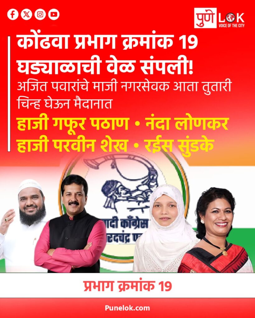 HomeBlogकोंढवा प्रभाग क्रमांक १९ घड्याळाची वेळ संपली! ⏰ Blog कोंढवा प्रभाग क्रमांक १९ घड्याळाची वेळ संपली! ⏰ By Pune Lok 30 December 2025 0 22 Share FacebookTwitterPinterestWhatsApp अजित पवारांचे माजी नगरसेवकआता तुतारी चिन्ह घेऊन मैदानात 🎺हाजी गफूर पठाण • नंदा लोणकरहाजी परवीन शेख • रईस सुंडके Share FacebookTwitterPinterestWhatsApp Previous articleसोनाली आणि लक्ष्मी आंदेकरला पुण्यात राष्ट्रवादीकडून उमेदवारी.Next articleउद्धव ठाकरे गटाकडून 2 महिला अर्ज,❗ AB फॉर्म फक्त एकालाच! Pune Lokhttp://www.punelok.com RELATED ARTICLES Blog 10 मिनिटांत डिलिव्हरी बंदरस्त्यावरील सुरक्षिततेचा विचार करत केंद्र सरकारने घेतलेल्या निर्णयाचे 🙏 राघव चढ्ढा यांनी स्वागत करत जाहीर आभार मानले. हा निर्णय डिलिव्हरी कर्मचाऱ्यांच्या... 14 January 2026 Blog राजकीय चर्चा🔴सहभागासाठी आमंत्रणराजकीय संशोधन आणि चर्चेत रुची असलेल्या सर्वांना हार्दिक आमंत्रण! 14 January 2026 Blog पुण्यात वनविभागाने केलेल्या कारवाईत अवैध पोपट तस्करीचा पर्दाफाश झाला आहे. या प्रकरणात पोपटांची तस्करी करणाऱ्या ३ आरोपींना अटक करण्यात आली आहे. 🎯 14 January 2026 LEAVE A REPLY Cancel reply Comment: Please enter your comment! Name:* Please enter your name here Email:* You have entered an incorrect email address! Please enter your email address here Website: Save my name, email, and website in this browser for the next time I comment. Most Popular भटके कुत्रे चावले तर जबर भरपाई!नागरिकांच्या सुरक्षिततेसाठी न्यायालयाचा ठाम आदेश, राज्य सरकारांना कडक इशारा दिला. 🚨 10 मिनिटांत डिलिव्हरी बंदरस्त्यावरील सुरक्षिततेचा विचार करत केंद्र सरकारने घेतलेल्या निर्णयाचे 🙏 राघव चढ्ढा यांनी स्वागत करत जाहीर आभार मानले. हा निर्णय डिलिव्हरी कर्मचाऱ्यांच्या... १२ जिल्हा परिषद, १२५ पंचायत समित्यांचा निवडणूक कार्यक्रम जाहीर!५ फेब्रुवारी मतदान, ७ फेब्रुवारी मतमोजणी🎯 राजकीय चर्चा🔴सहभागासाठी आमंत्रणराजकीय संशोधन आणि चर्चेत रुची असलेल्या सर्वांना हार्दिक आमंत्रण! Load more